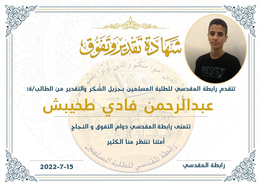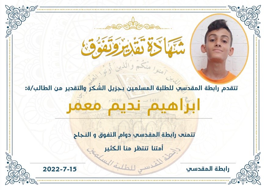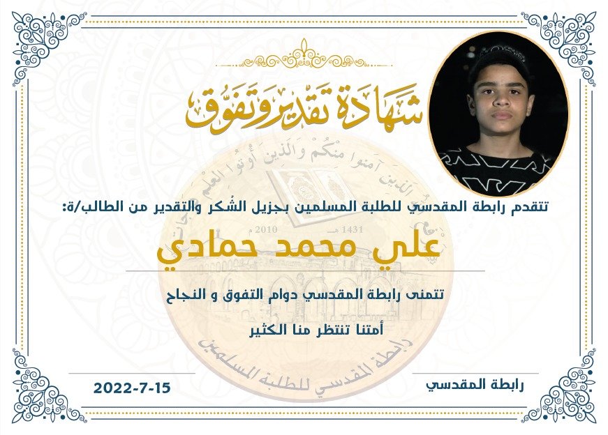 شهادة تقدير و تفوق