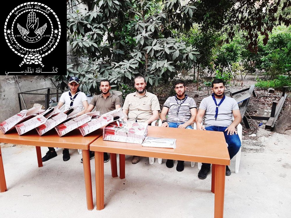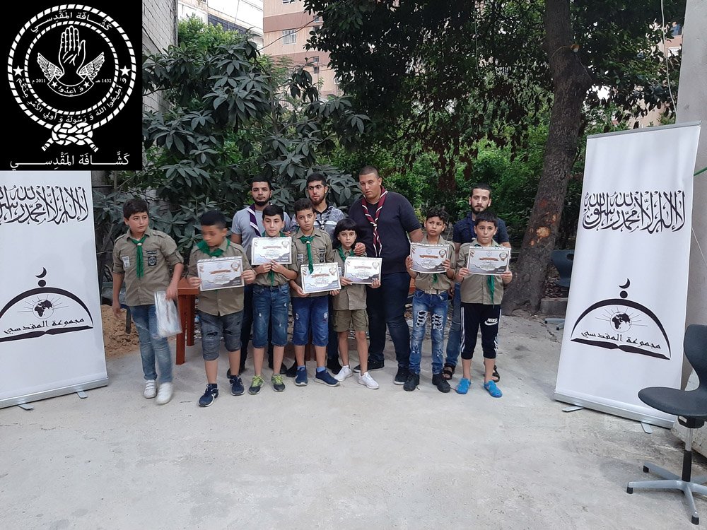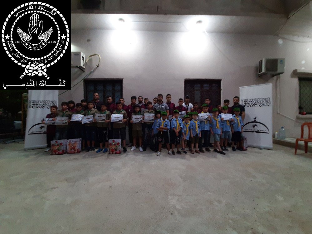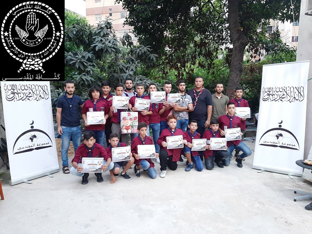 كرمت كشافة المقدسي عصر اليوم الأحد 9 محرم 1441هـ، الموافق 8 أيلول 2019، المميزين في المخيم الكشفي “أجيال المقدسي” والذي أقيم الأسبوع الفائت في منطقة داريا النهر. حيث ركز التكريم على القيم التالية (الإنضباط، السمع، الطاعة، الأخلاق، الشجاعة والتدين).